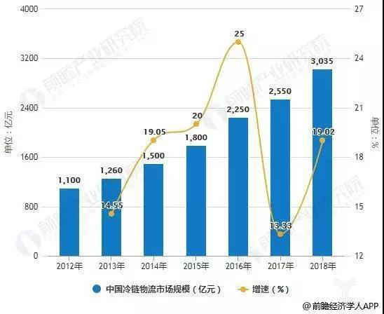 2015年我国冷链物流市场规模达到1800亿元,同比增长20%。到了2016我国冷链物流市场规模增长至2250亿元。截止至2017年我国冷链物流市场规模达到了2550亿元,同比增长13.33%》预计2018年我国冷链物流市场规模将突破3000亿元,达到3035亿元,较上年增加485亿元,同比增幅达到19.02%。![]()